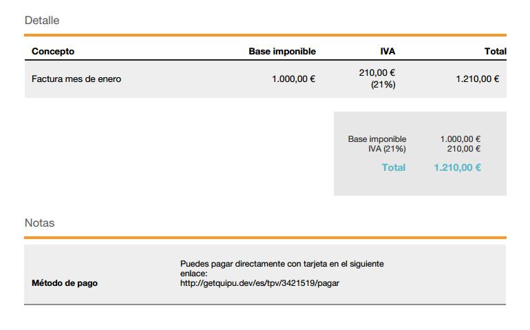Making the payment of the invoices easier for your client is one of the best strategies to keep your invoices up-to-date.From now all your invoices in Quipu will contain a link from which your client will be able to pay it.