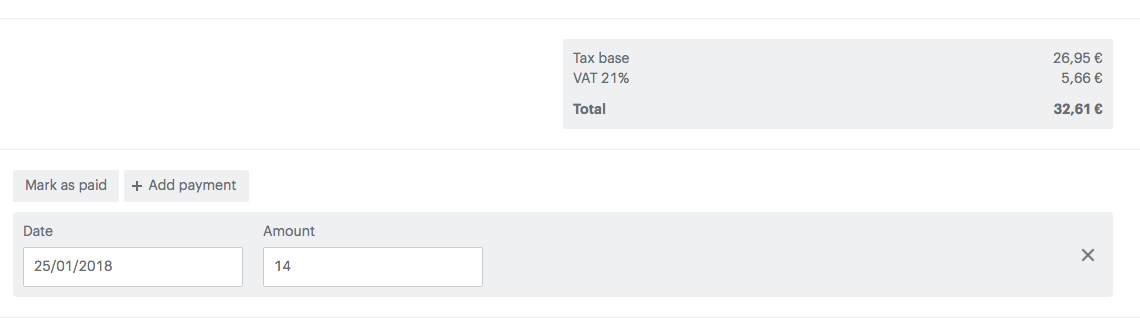 Firstly, you may do bank reconciliation ( only with premium account) , i.e., you select ‘Banks‘, which allows you to reconcile your transactions according to bank transactions that you receive. Or, for the same invoice, you have the option ‘Mark as paid‘ and you may only deduct a portion of a payment. Quipu will indicate you the amount to be paid.